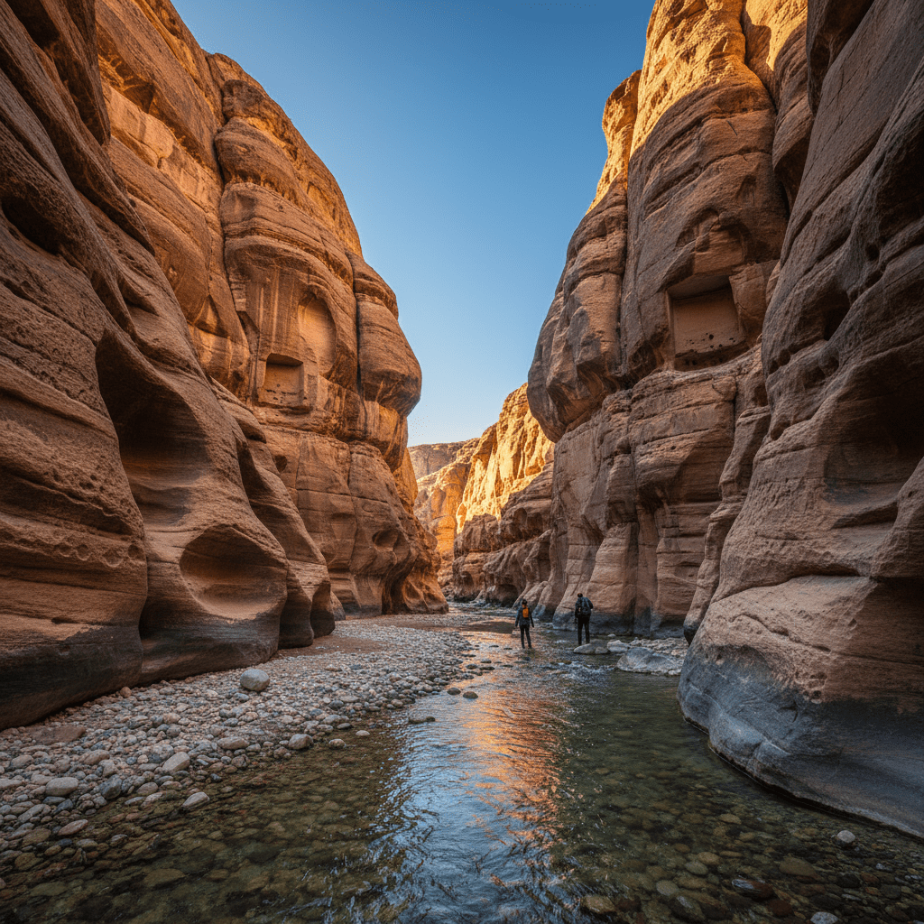 شاید انتظارش را نداشته باشید، اما در کف این دره خشک، جریان دائمی و فصلی آب وجود دارد. این آب روان در مسیر خود آبشارهای کوچک و حوضچه‌های زلالی را پدید آورده که طراوت خاصی به فضا می‌بخشد. همین تضاد شگفت‌انگیز میان آب و خشکی کویر، یکی از دلایل اصلی جذابیت کال جنی است که هر بیننده‌ای را به وجد می‌آورد.