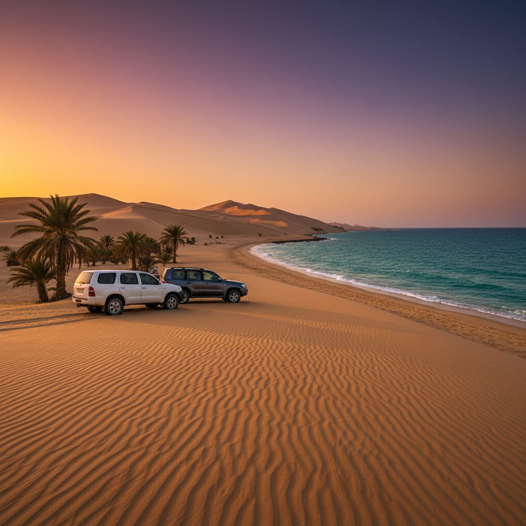 وقتی در ساحل بینظیر درک توقف میکنیم، تضاد حواس به اوج خود میرسد. از کابین داغ خودروی آفرود بیرون میآیید و پاهایتان را روی شنهای خنک و نرم میگذارید. این حس فرو رفتن پا در ماسههایی که انگار الک شدهاند، در حالی که چند قدم آنطرفتر نخلهای سبز سر از کویر درآوردهاند، یکی از آن لحظاتی است که هرگز فراموش نخواهید کرد. اینجا همان نقطه تلاقی ناممکنهاست.